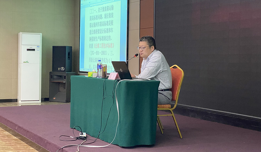 會議上,交通運輸部公路科學(xué)研究院劉志強高級工程師為與會人員做《交通運輸部關(guān)于進(jìn)一步加強全國治理車輛超限超載工作的通知》等治超最新政策法規(guī)及建設(shè)技術(shù)標(biāo)準(zhǔn)的解讀。
