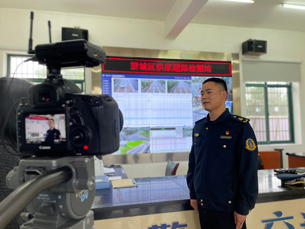 ▲長沙望城區(qū)交通運(yùn)輸綜合行政大隊(duì)洪家超限檢測站站長接受湖南經(jīng)視采訪